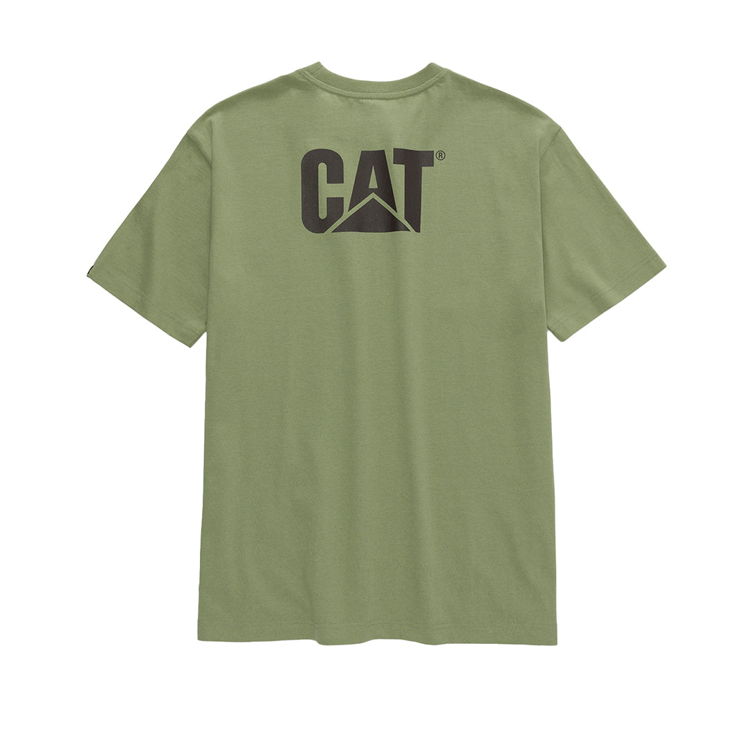 Camiseta de hombre liviana y fresca, 100% algodón de talle activo (más amplio a lo largo del costado). cuello tipo parrilla con retención de forma. Logo cat al pecho izquierdo y en la parte trasera.